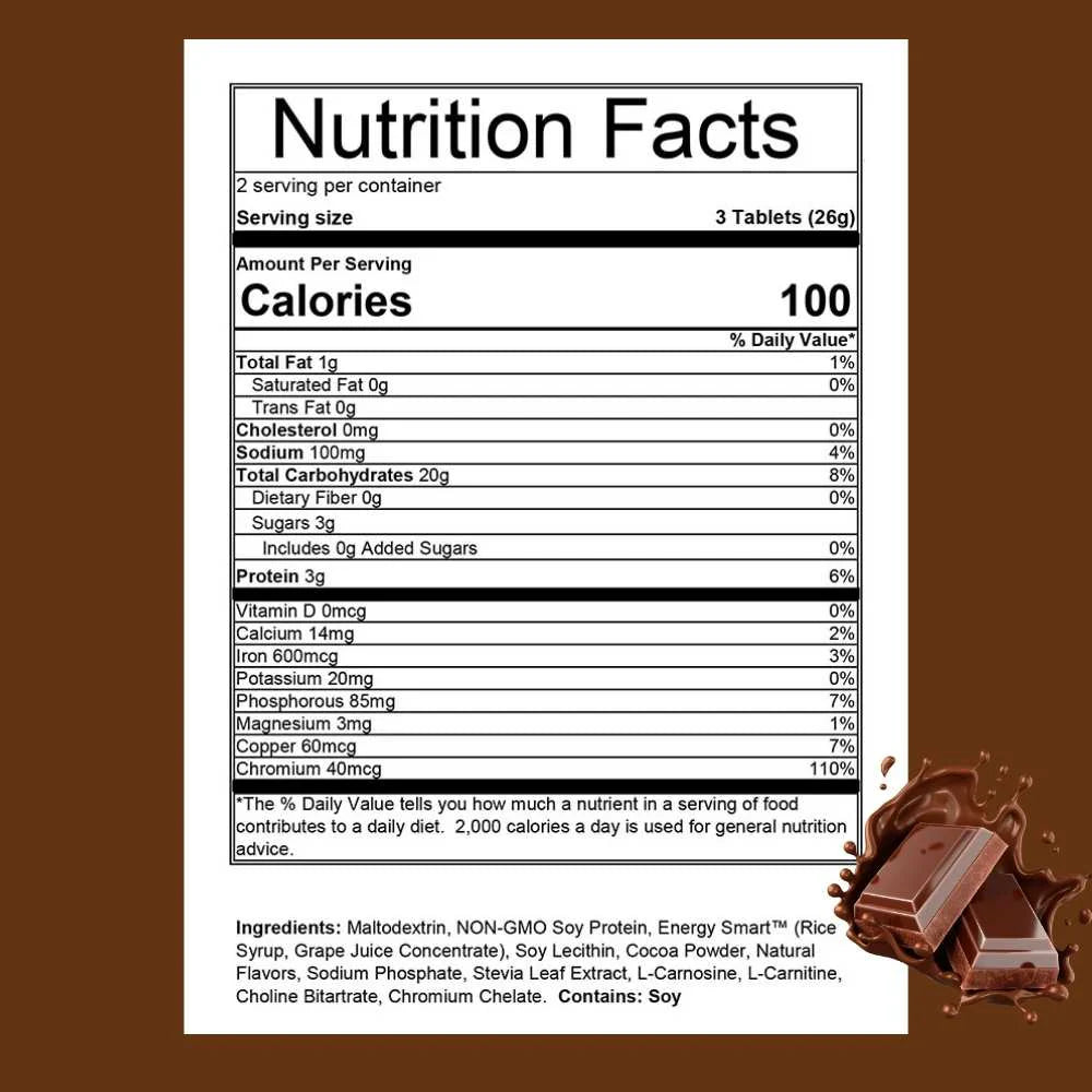 - 3 tablets = 100 calories