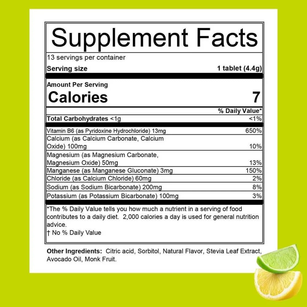 - Vitamin B6 13 mg (as pyridoxine HCL)