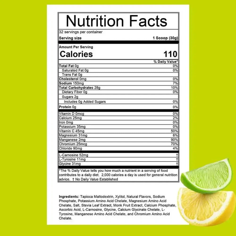 Provides sodium, chloride, calcium, magnesium, and potassium to support hydration, nerve signaling, muscle function, and to help reduce the risk of cramping during exercise.